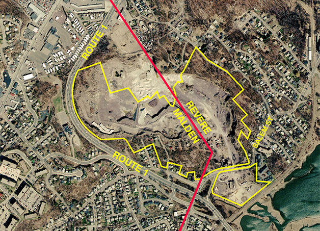 February 2002 - Rowe Stone Quarry - Facing north, merging onto Salem Street from Lynn Street off-ramp or Route 1 North.