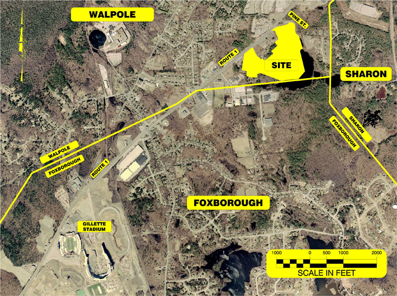 Aerial photo showing site and its proximity to Gillette Stadium.