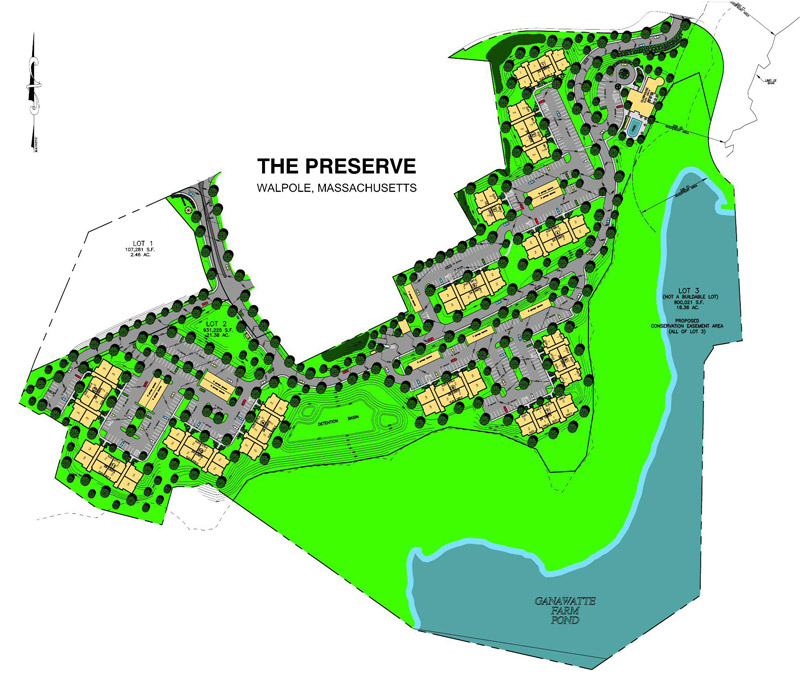 This residential development is comprised of (12) three-story luxury apartment buildings totaling 300 units. Overlooking Ganawatte Farm Pond, The Preserve is located 1 1/2 miles north of Gillette Stadium.